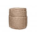 Джутовый канат – верёвка, полученная из кустарника джут, путём плетения и скручивания. Джут – род кустарников и полукустарников, прядильная культура, из которой и получают натуральное джутовое волокно. В основном джут произрастает в странах Азии (Бангладеш, Индия, Вьетнам и т.д.). Так как растение достигает высоты 4 метров, после многочисленных процедур обработки ветвей кустарника, итоговое состояние растения это – джутовое волокно. Из таких длинных волокон и изготавливают джутовые канаты.