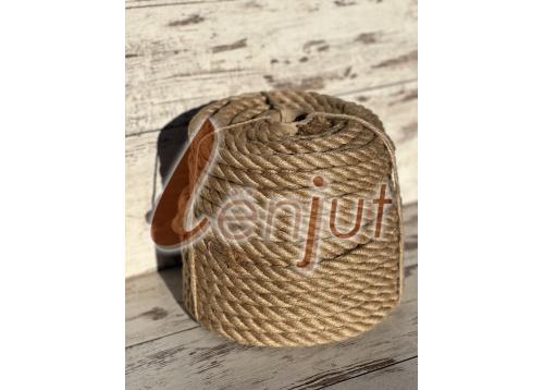 Джутовый канат – верёвка, полученная из кустарника джут, путём плетения и скручивания. Джут – род кустарников и полукустарников, прядильная культура, из которой и получают натуральное джутовое волокно. В основном джут произрастает в странах Азии (Бангладеш, Индия, Вьетнам и т.д.). Так как растение достигает высоты 4 метров, после многочисленных процедур обработки ветвей кустарника, итоговое состояние растения это – джутовое волокно. Из таких длинных волокон и изготавливают джутовые канаты.