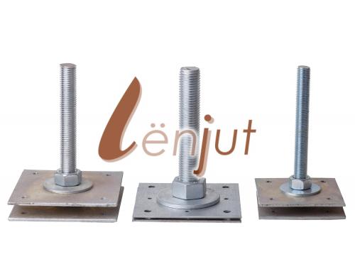 Винтовые – болты, прикреплённые к пластине, которая фиксируются к деревянному основанию с помощью саморезов. Компенсаторы усадки данного вида изготовлены из оцинкованной стали. Их устанавливают сверху или снизу вертикальных столбов на верандах, террасах, верхних этажах деревянных строений.